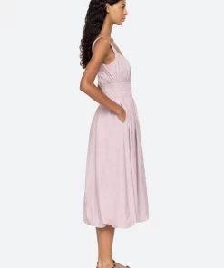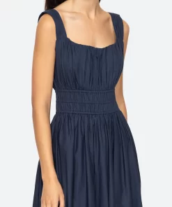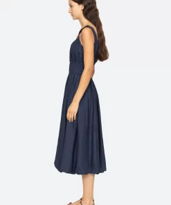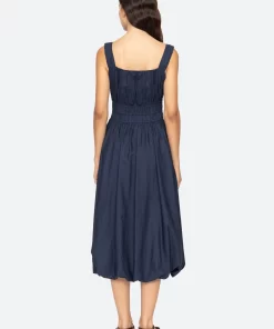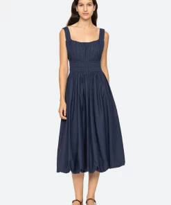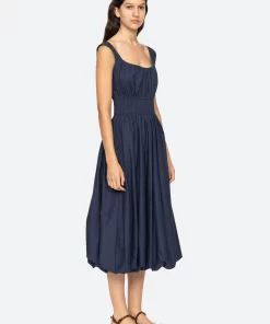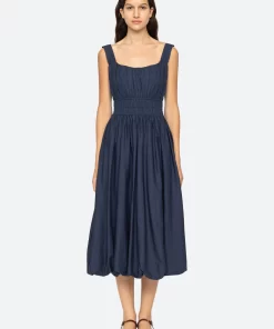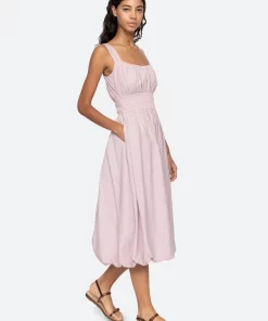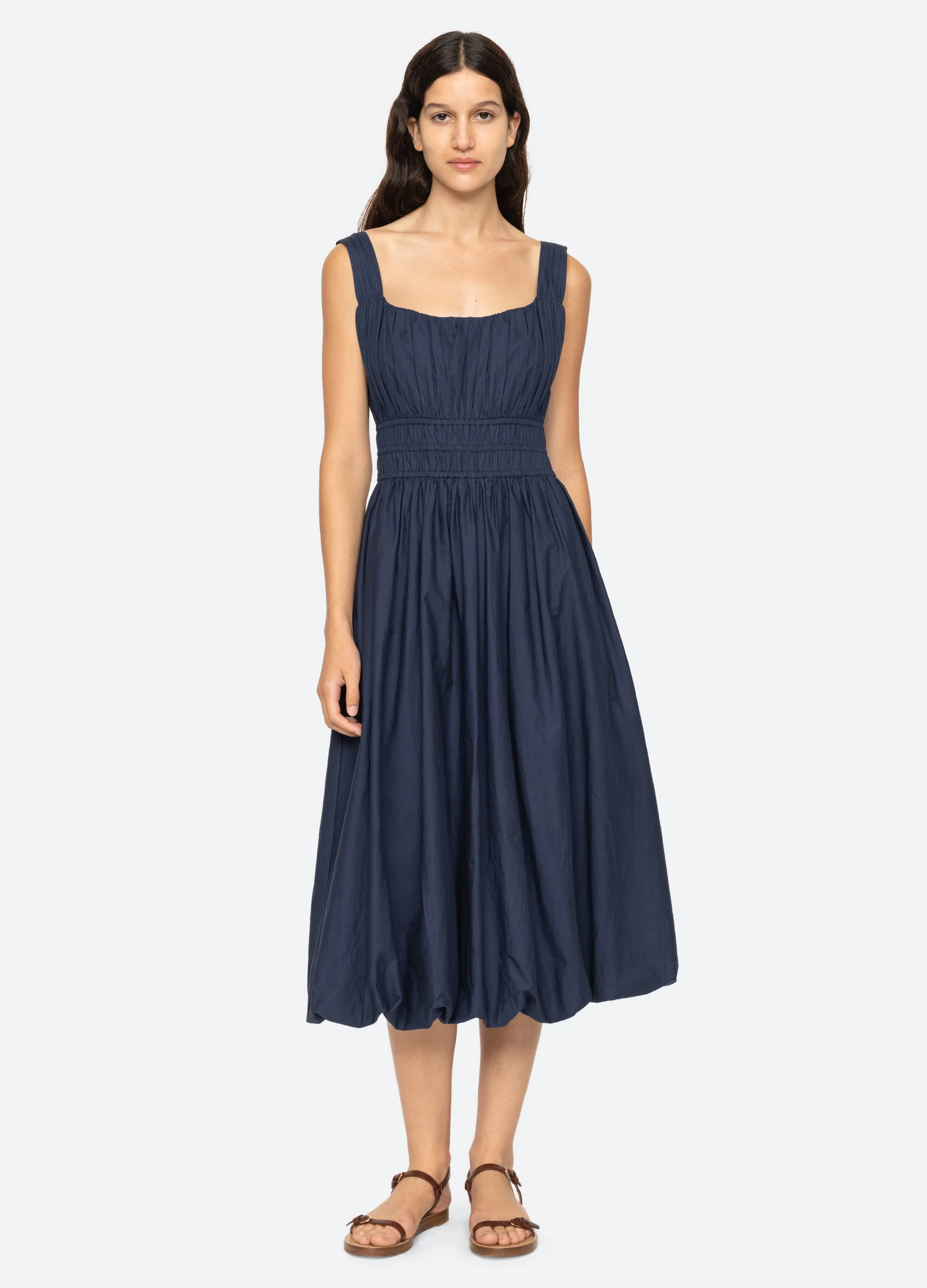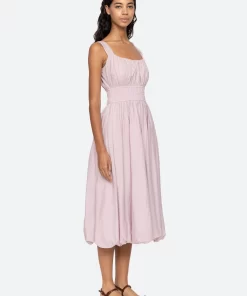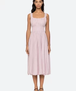 The Emmet midi dress features an elastic waist with cording and bubble hem.